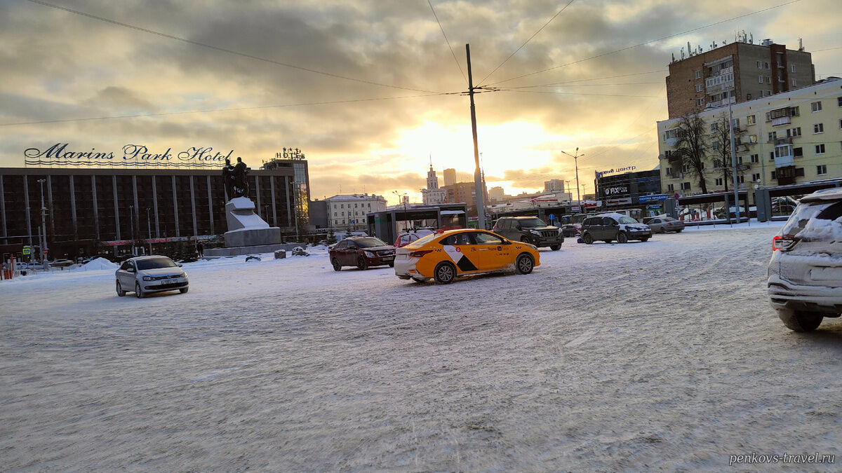 Очень жаль, что в этом городе мы были проездом. Но всё же за столь короткое пребывание в этом городе он успел открыть нам несколько своих прекрасных достопримечательностей. Когда мы вышли из вагона поезда, в котором провели всю ночь, то сразу почувствовали, что Екатеринбург встречает нас морозом. Поэтому первым делом отправляемся в свой отель, для того чтобы одеться потеплее и пойти изучать город. В этот раз мы забронировали отель в нужном месте. Почему так решили, да просто он располагался недалеко от железнодорожного вокзала, ну и от некоторых важных, на наш взгляд, достопримечательностей. |